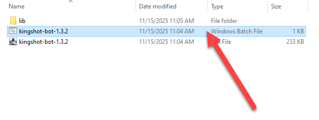 To open KingshotBot, double click on the kingshot-bot-1.3.2.bat